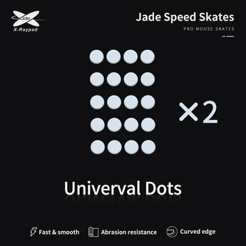 Jade Universal Dots feature universal 0.8mm pure PTFE dot skates with a 6.5mm diameter, engineered for smooth, consistent gliding and enhanced precision. Produced using a one-piece molding process, each dot has a perfectly smooth and flat surface that ensures stable, predictable mouse movement.