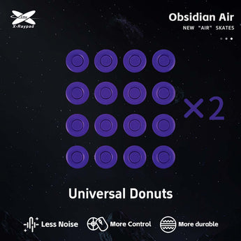 Obsidian Air Universal Donuts are designed for players who want less noise, more control, and stronger braking power. Featuring a 9.5mm donut shape with a finely frosted surface texture, these skates increase friction for improved stopping accuracy and tighter control. The hardened PTFE surface enhances braking performance, making them ideal for precision-heavy gameplay.