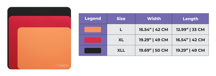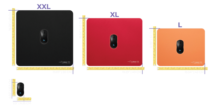 At JP Gaming, we offer mousepads in L to XXL sizes to fit any gaming setup. Check out our side-by-side dimensions below to find the perfect fit for your needs.